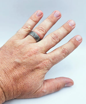 Anello Uomo in Acciaio inossidabile modello fascetta con disegno infinito,disponibile dal numero 7 al 22,controllare misure esatte