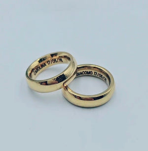 Coppia di Fedi in Acciaio inossidabile ,spessore 6mm,personalizzate con incisione a laser a tuo piacere,per le misure contattaci su Whatsapp 340 5856217