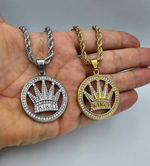 Catena a corda cm 55,ciondolo a forma di Corona con scritta king di circa 5 cm,totalmente acciaio inossidabile