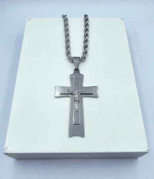 Catena acciaio inossidabile antiallergico a corda di 6 mm di spessore e 55 cm lunghezza,Crocifisso di circa 8 cm