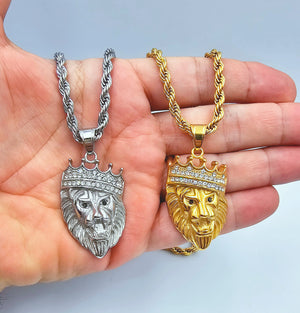 Catena a corda di 55cm e pendente con testa di Leone