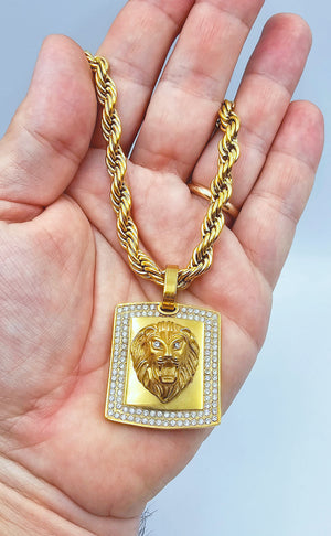 Catena a corda di 55cm e pendente con testa di Leone