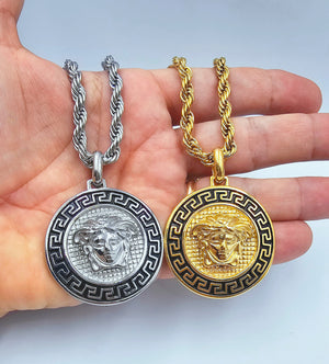 Catena Acciaio inossidabile a corda di 6 mm,lunghezza 55 cm,testa di Medusa di 5 cm