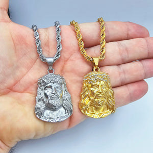 Catena a corda cm 55,pendente con Volto di Gesù e corona con strass