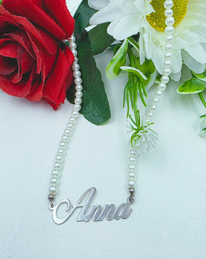 Collana girocollo con Nome e Perle in argento 925,personalizzabile con qualsiasi nome